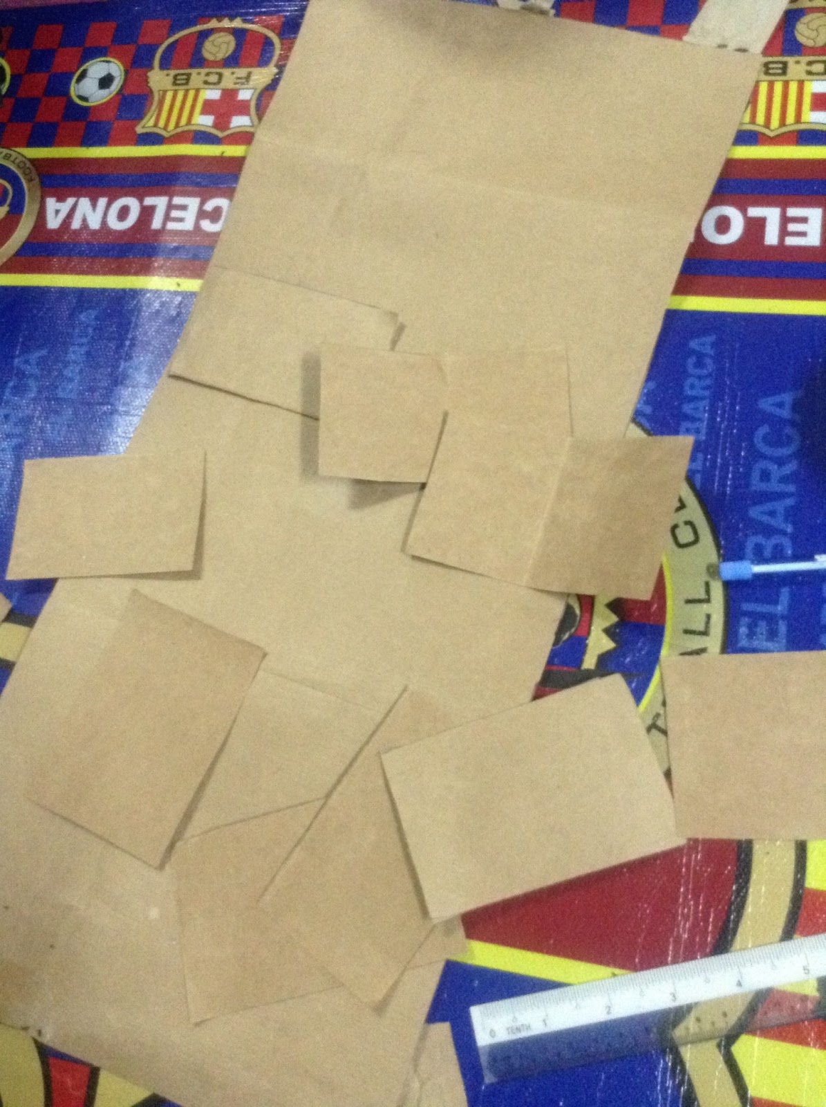 1) Sediakan peralatan serta bahan - bahan yang perlu seperti beg kertas, sampul surat, kotak mug, kotak kasut, saloptape, gunting, pisau kecil dan marker pen.